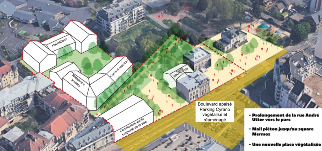 Terrazas et Les Tilleuls. Une offre commerciale attractive et maîtrisée par la Ville, avec la création d’un lien entre Cyrano et ce projet.